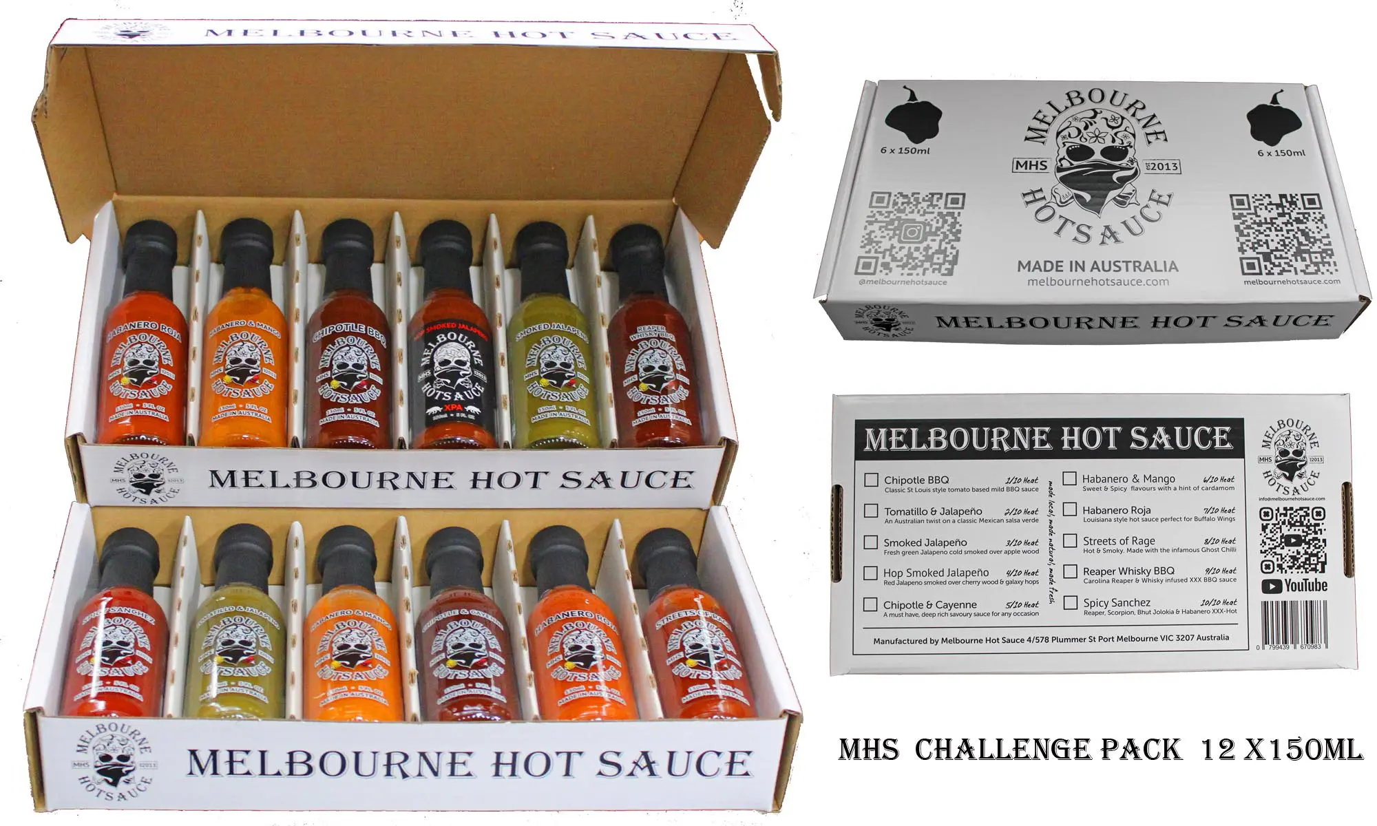 MHS Challenge Pack contains 12 of the best award winning Hot Sauce’s ranging from mild to extra hot packaged in our all new bespoke gift boxes
